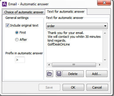 1. A number of texts for automatic answers can be defined. To add a new text, click on Add....