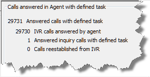 | Answered calls with defined task | All calls that have been answered by an agent and have a task, i.e. calls via IVR and Inquiry calls with defined task. |