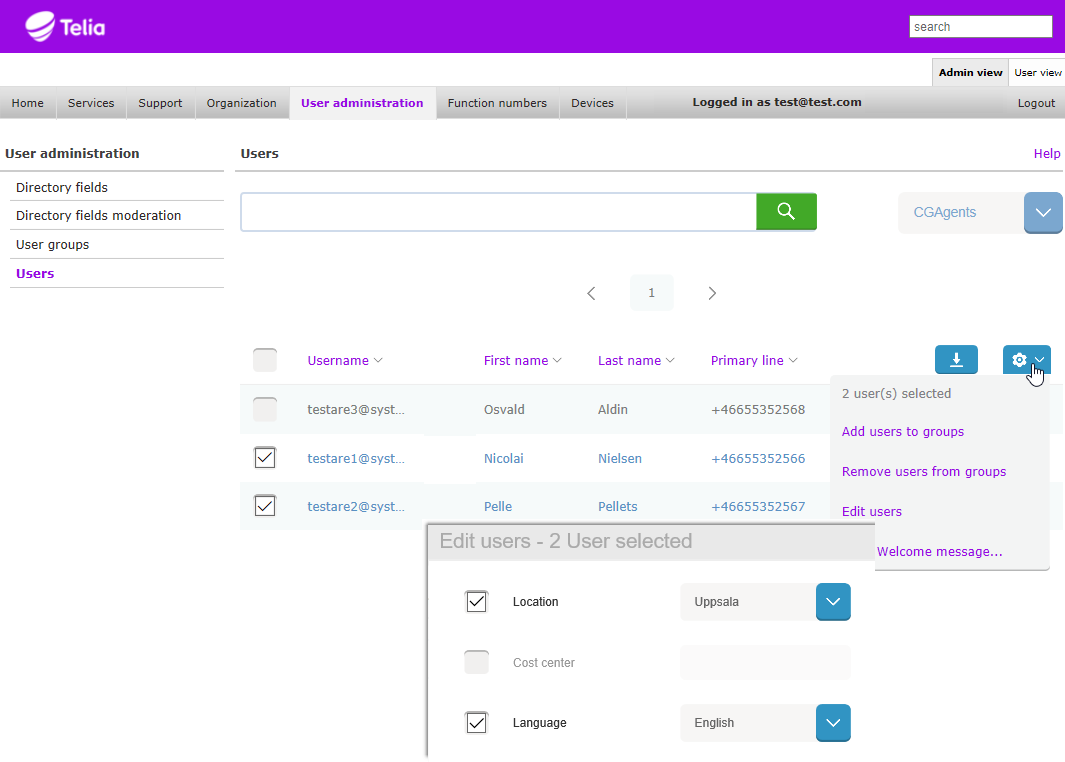 I Administratörsvyn kan du redigera all användardata för en eller flera användare.