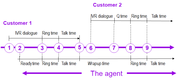 This is an example showing the wrapup time for an agent handling phone calls.