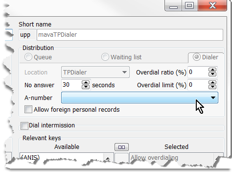 When you have selected Distribution, Dialer you have to enter another five parameters: