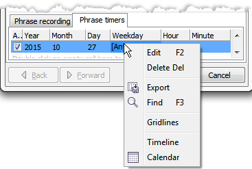 In the bottom part of the window, in the Phrase timers tab, you can add, edit and remove timers for each phrase object.