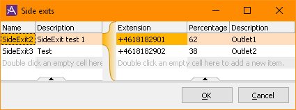 For the selected side exit you can add a number of telephone extensions that the flow can be routed to, and for every such extension you configure: