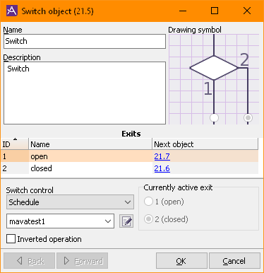 .If the switch is not manually controlled, this is also indicated with a clock icon, i.a. in the right-hand part of the Dialogue flows – main window.