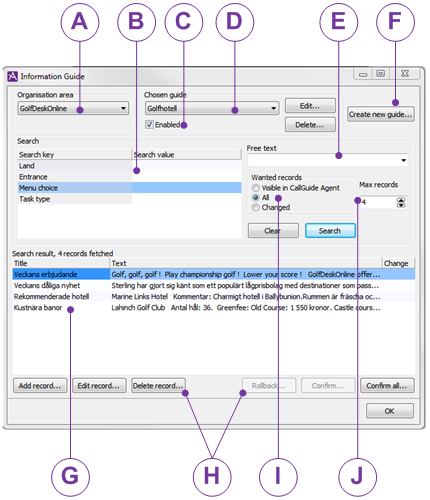- Change record... Opens the Record in Information Guide window. The contents of the selected record are shown in tabs named Updated record, and Original record