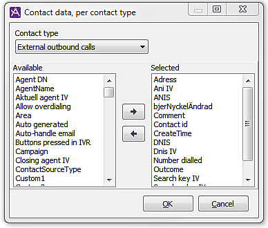 In the column to the left you find available choices and to the right you see those selected for this very contact type. You move keys by selecting them in one list and then clicking on the appropriate arrow.