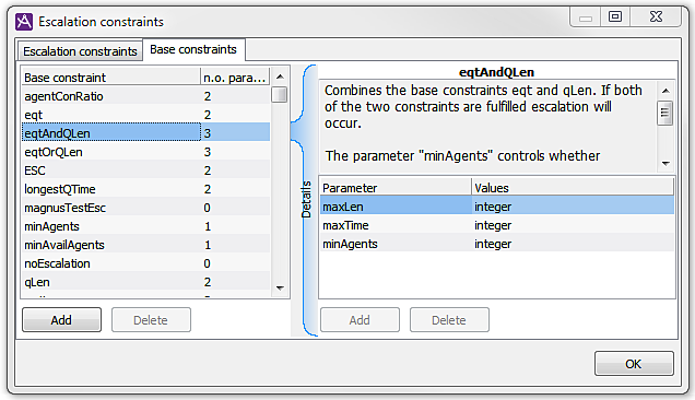 To be able to use a base constraint in the routing form, an escalation constraint must be created in the Escalation constraint tab. Also for base constraints without parameters an escalation constraint must be created.