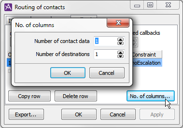 You cannot use this dialogue box to reduce the number of columns. Empty columns are deleted automatically if you leave the Routing of contacts window and then reopen it.