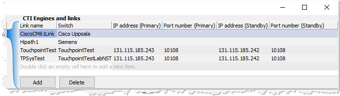 - When a CTI engine is removed, the node name, and the links, disappears. However, the link names used at configuration still remain in the list under the Link name heading.