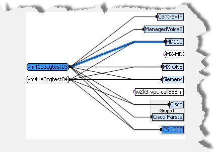 At the bottom left of the Switches for server based CTI window, you see a drawing of all the CTI engines, and switches in your ACE system, as well as the links connecting them.