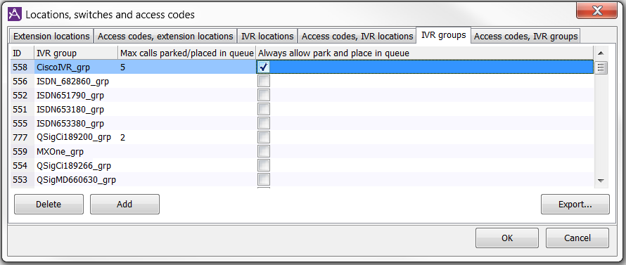 - Calls can normally only be parked or placed in queue in an IVR belonging to the same IVR group as the IVR the call came in through. If calls of another type than incoming IVR calls are to be parked, the IVR group is used in interplay with the agent’s extension location. Where multiple switches are handled by the same ACE Server you can use Always allow park and place in queue described below.