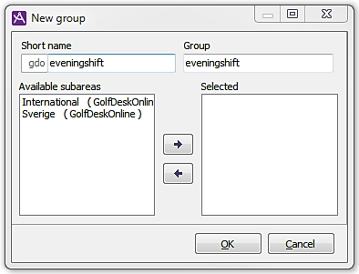 - Choose the subareas that the group/skill is to be included in. To choose a subarea, select it and click on the right arrow. If you want to undo a choice, select the subarea and click on the left arrow.