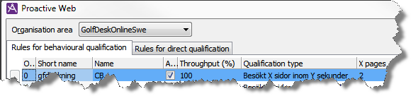 In the following list you see how to add a rule via the Rules for behaviour qualification tab. In the Rules for direct qualification tab some of the fields described below are missing, but in all other respects both tabs in the Proactive Web window function in the same way.