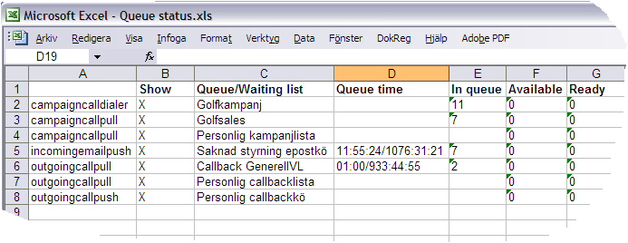 In the picture below you see how the result of an export may look - a snapshot of the queue status window.