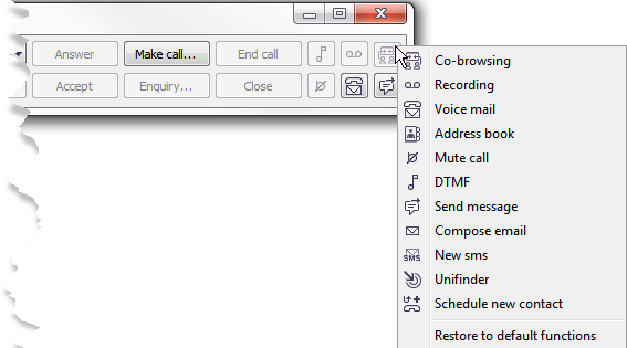 The six smaller buttons to the right in the ACE Agent main window can be used for the functions you want to open quickly.