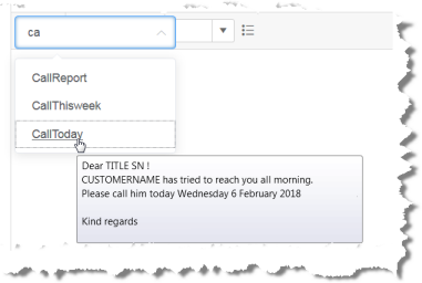 Om Quick texts är inställt i ACE Admin kan du infoga färdiga texter, exempelvis i e-postsvar.