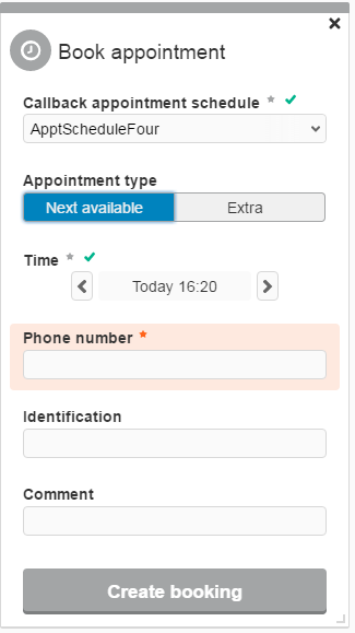 - Välj ett schema för tidsbokad callback. Ditt val anger automatiskt en viss ärendetyp i callbackposten, och avgör vilken väntelista den ska styras till.