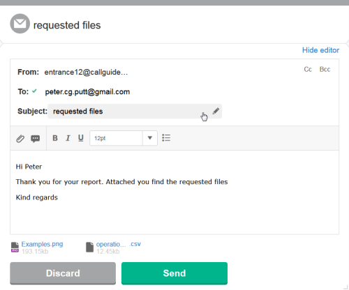- Svara till agent. I meddelanden som vidarebefordras inom ACE är adressfältet förifyllt med namnet på agenten som senaste hanterade e-brevet.