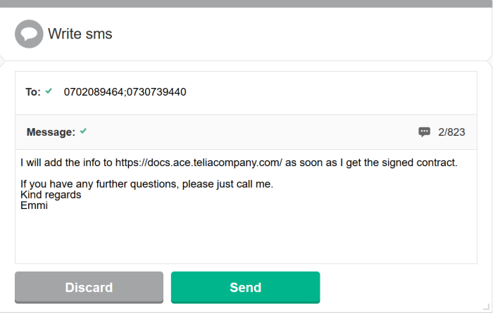 - För att lägga till fler än en mottagare, använd , eller ; mellan siffrorna.
