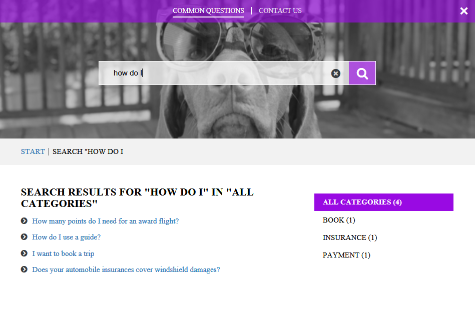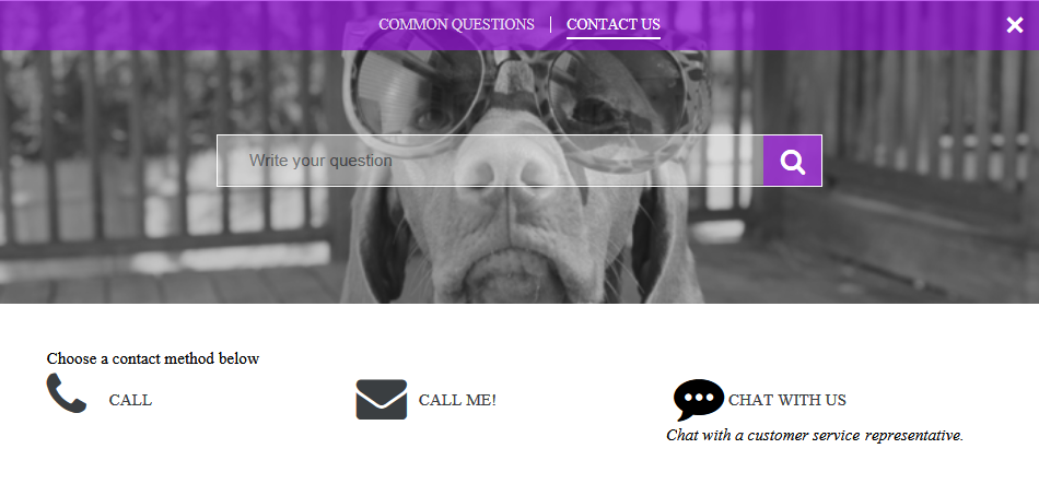 - Det finns flera inbyggda gränssnittsalternativ inklusive chattbot, vilket ger webbesökaren möjlighet att ställa en uppsättning frågor. När en chattbot inte kan svara styrs chatten över till den manuella tjänsten.