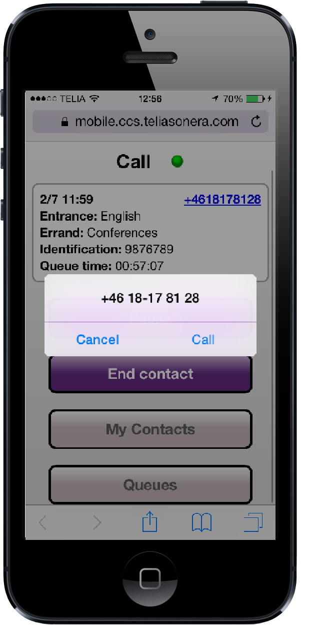 Ring ett callback-samtal i CallGuide Mobile Agent