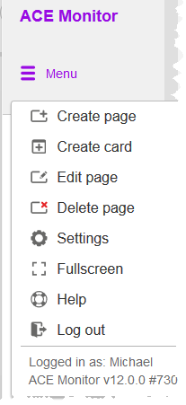 Annat och välj en Korttyp, vilket avgör vad som ska visas och hur. Se Korttyper i ACE Monitor. - Efter att du sparat med OK görs alla ändringar via kortets meny.