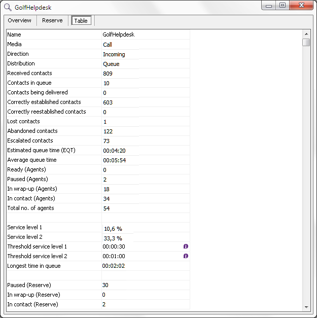 The Table tab also contains everything you find as graphics in Queue details - Reserve tab.