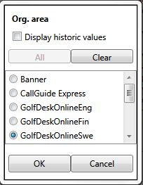 öppnar fönster med olika val beroende på parameter (se bild).- Välj aktuellt Organisationsområde.