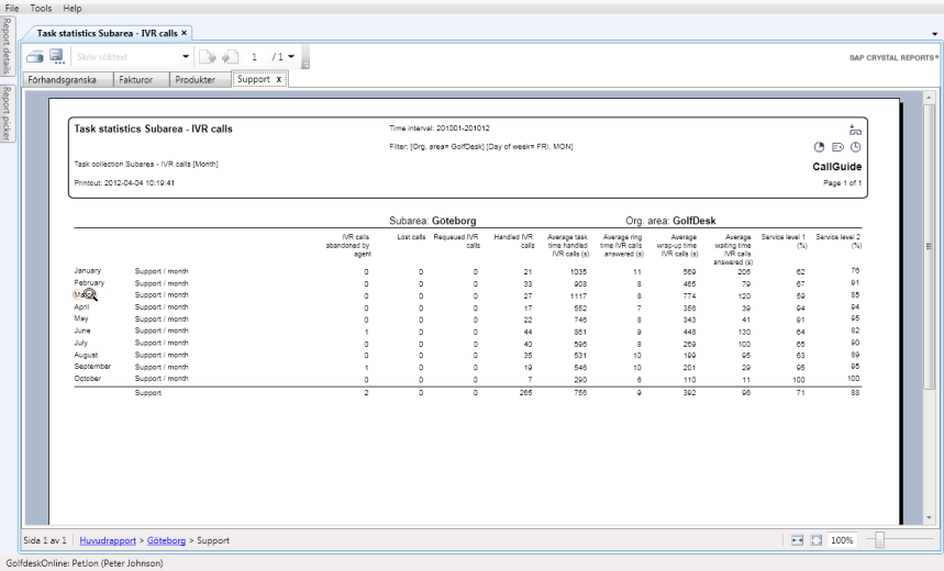 ACE Report is used to follow-up of your contact centre activity back in time, which can help you make plans for the future. If you are new to Telia ACE, start with ACE Statistics.