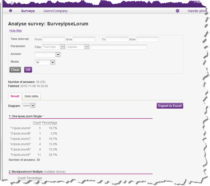 Above the tabs you see the total number of answers and the time when the data was fetched.