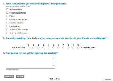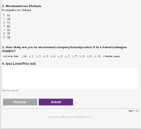 By having your own templates made you can adjust colours and fonts for your web surveys. If your organisation has specially tailored graphical layouts for different web surveys, this is where, under Default new surveys, you select which one to be used. This is one example of how the same type of questions are presented in two different templates.