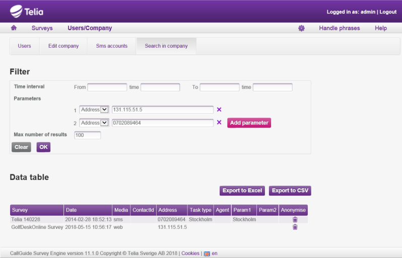 This is also where you anonymise survey answers, i.e. remove personal data such as phone number, contact ID and values set to customised parameters.