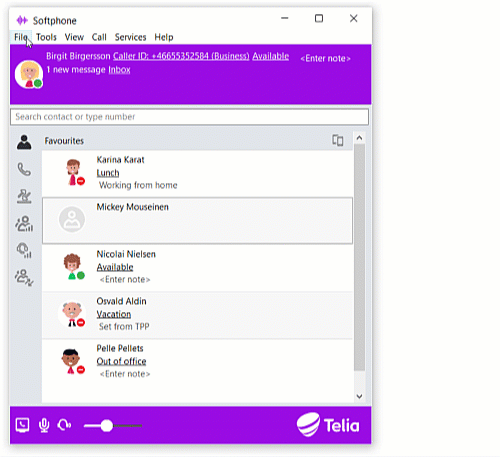 - Filer är där du loggar ut från ACE Softphone.
